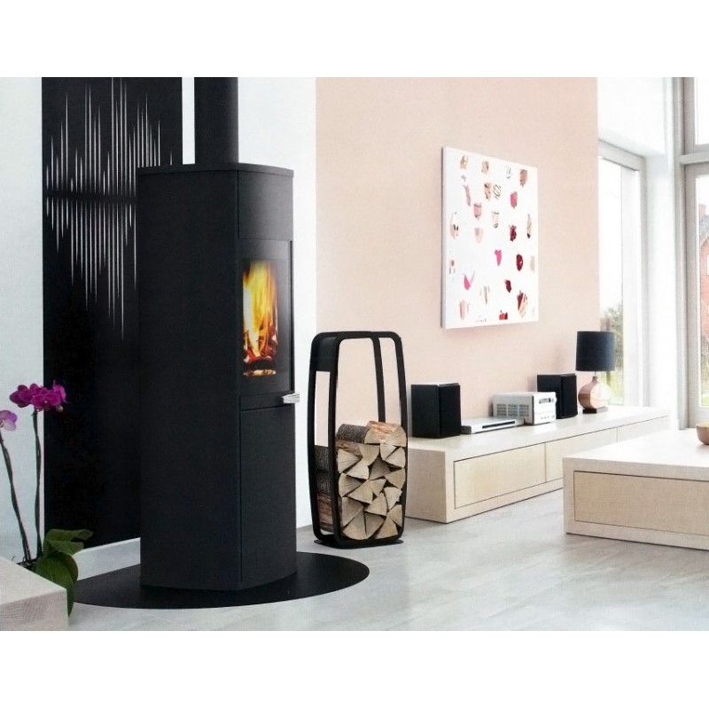 Le rangement à bûches JEROBOAM permet de stocker environ trente bûches de longueur 33cm près du foyer, avec un design soigné.